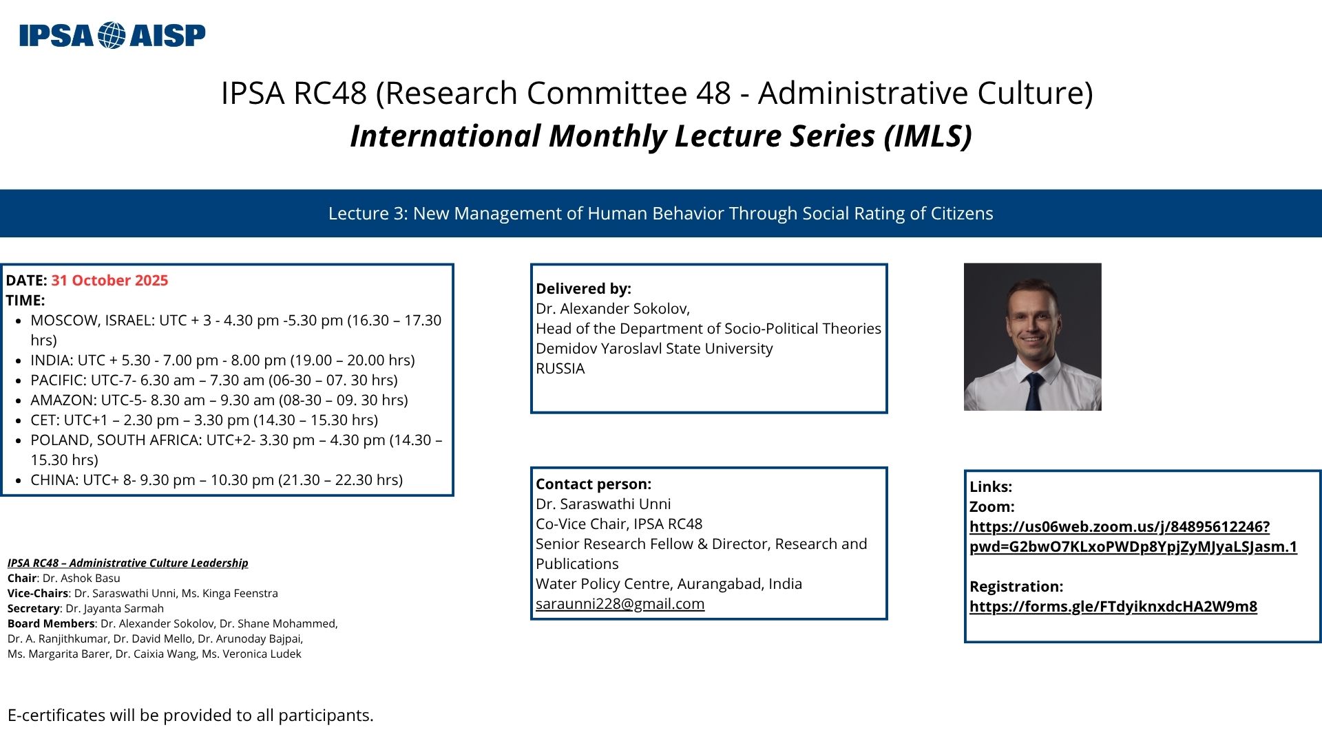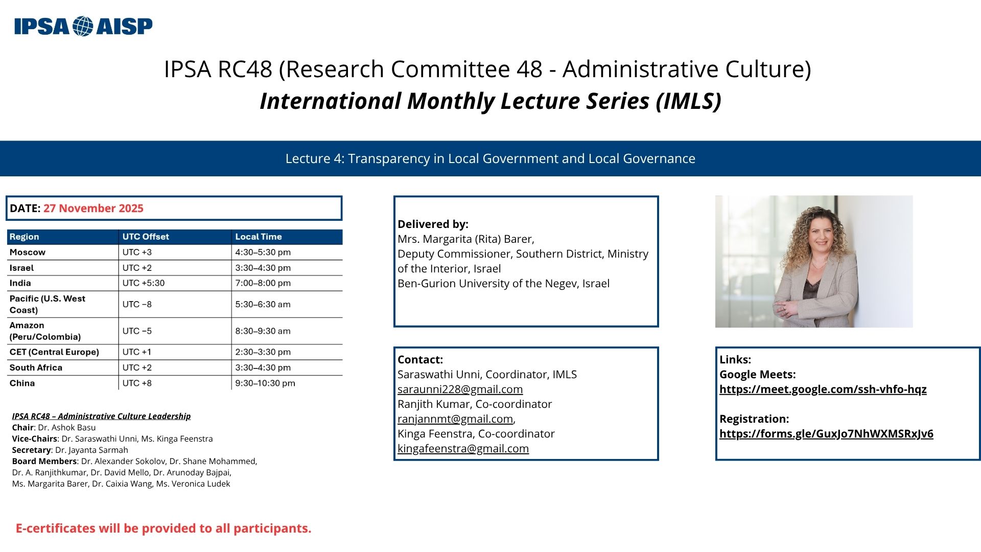 Are you interested in becoming a member of RC48 Administrative Culture? Please send an email to RC48 Chair Dr. Ashok Basu drarbasu@gmail.com – with Vice Chairs Dr. Saraswathi Unni and MSc. Kinga Feenstra in CC, saraunni228@gmail.com and kingafeenstra@gmail.com